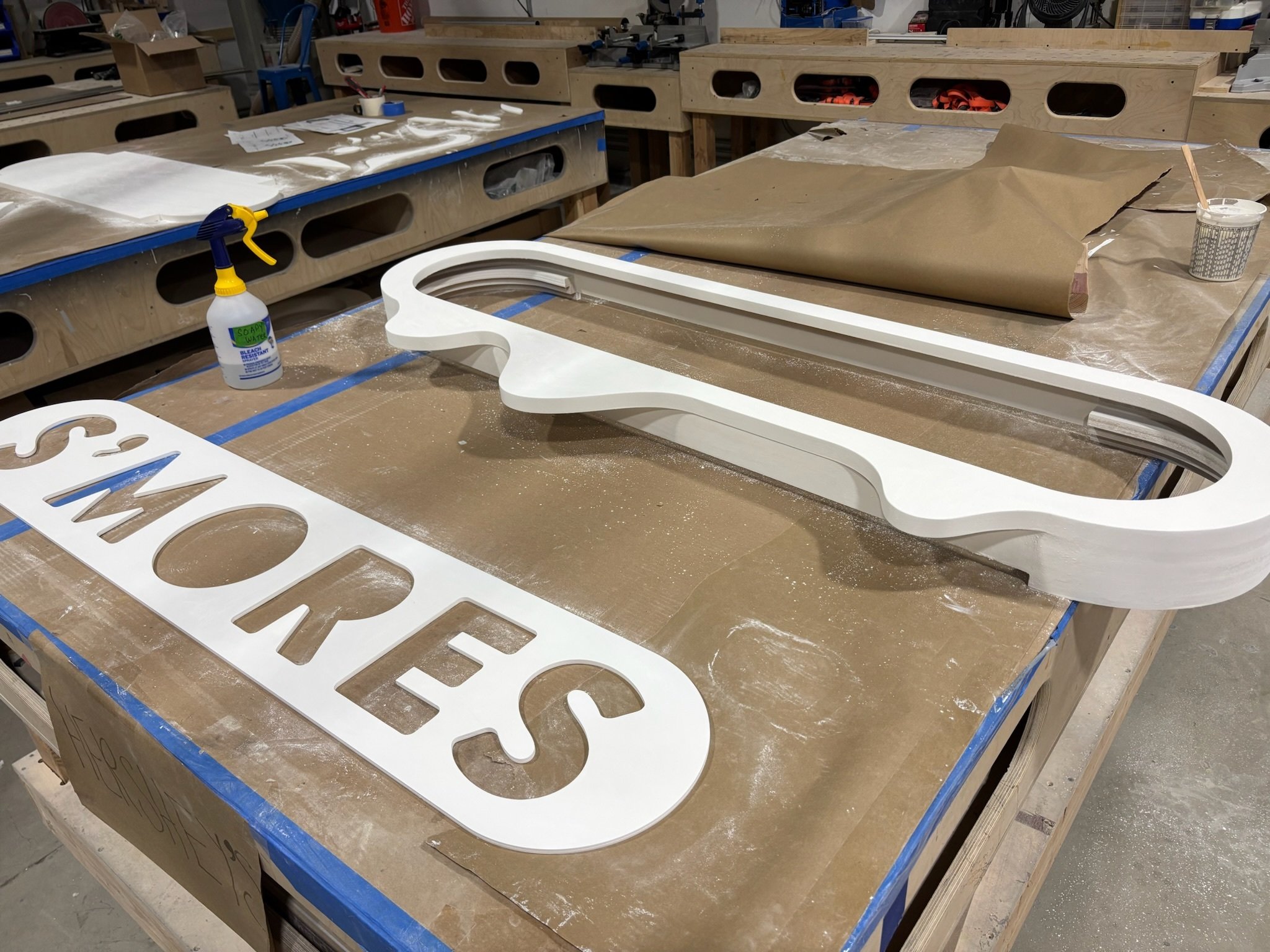 Designed as the visual heartbeat of the space, the illuminated S’mores sign blends acrylic, MDF, high-density foam, dimensional layers, and three types of LED lighting. Every detail — from glowing milkshake swirls to edge-lit brand cues — was engineered to capture attention and delight.