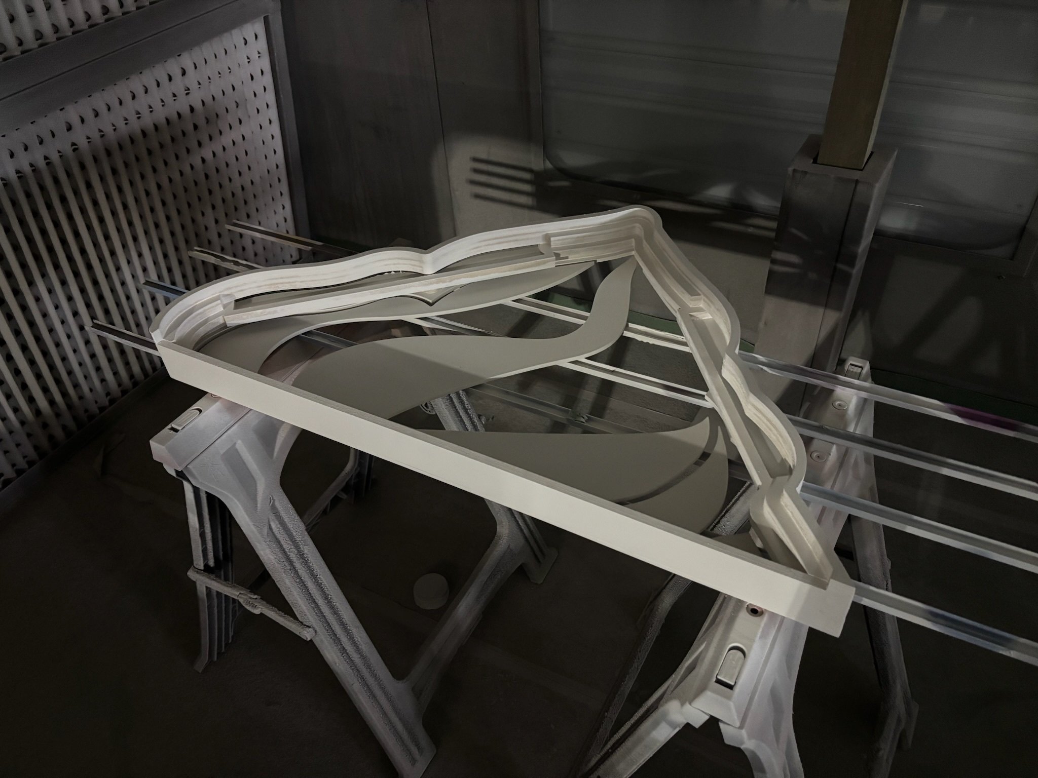 To modernize the area and create a photogenic backdrop, our team built a 2x4 substructure and installed custom slat-wall panels printed with a soft gradient. Multiple rounds of color sampling with Axis ensured the exact tone Hershey’s envisioned.